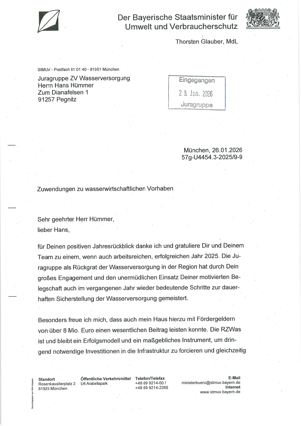 Aktuelles (26.01.2026): Post aus dem Staatsministerium: Staatsminister Thorsten dankt der Juragruppe < Zurück zum Überblick > Aktuelles