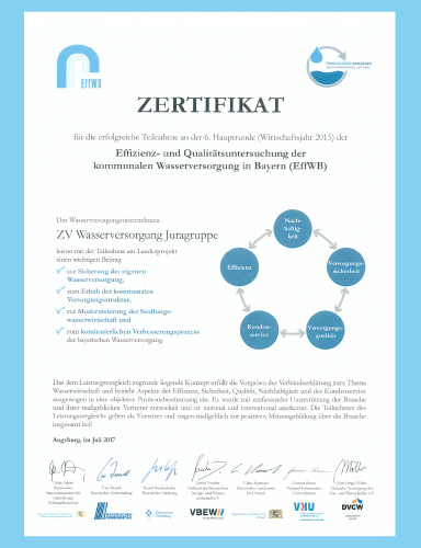 Die Juragruppe hat sich im Rahmen des bayerischen Benchmarkingprojektes "EffWB“ mit dem Bereich Wasserversorgung zum wiederholten Male einer vergleichenden Positionsbestimmung unterzogen. Das von allen maßgeblichen Verbänden und der Wasserwirtschaftsverwaltung gemeinsam getragene Projekt soll mit geringem Aufwand einen objektiven Leistungsvergleich bzw. eine Positionsbestimmung ermöglichen