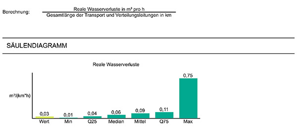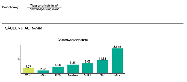 Der Wert der kaufmännischen Verluste, also der Anteil der nicht verkauften Was-sermenge, liegt mit 4,57 % unter dem Mittelwert der Vergleichsgruppe (9,088 %).