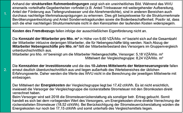 Die Gesamtkosten liegen mit 2,87 €/m³ zwar über den Mittelwert der Vergleichsgruppe (1,53 €/m³). Für diesen Vergleich müssen jedoch aufgrund der regen Nebentätigkeit die Gesamtkosten um die Kosten für die Nebengeschäfte und die akti-vierten Eigenleistungen bereinigt werden. Nach Rödl & Partner betragen die bereinigten Gesamtkosten inkl. Abschreibung 2,14 €/m³ (Vergleichsgruppe 1,36 €/m³).