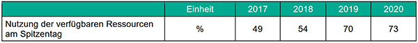 Bei Versorgern mit eigener Wassergewinnung lassen sich Aussagen zur Ressourcenverfügbarkeit anhand der Kennzahlen Auslastung der Gewinnungsmenge am Spitzentag und Auslastung der Gewinnungskapazität treffen. Die Auslastung der Gewinnungsmenge am Spitzentag lag im Betrachtungsjahr im Falle der Juragruppe bei 34,14 %, der Mittelwert der Vergleichsunternehmen betrug hier 76,76 %.