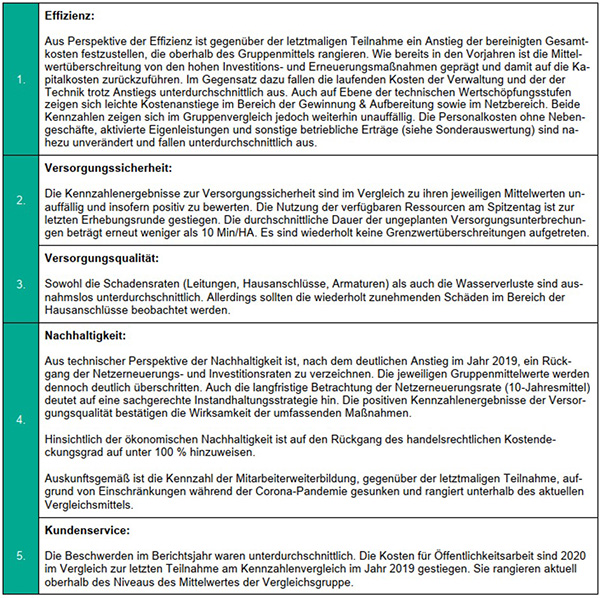Die Ergebnisse der vergleichenden Untersuchungen mit 17 ähnlich großen Versorgern bestätigen
