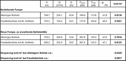 2. Mit Hilfe einer Berechnung des Wirkungsgrades der Brunnenpumpe im Tiefbrunnen Moggendorf durch die Firma PFK Ansbach wurde festgestellt, dass sich durch den Einbau einer neuen Pumpe Einsparungen durch eine höhere Förderleistung bei geringerem Energieverbrauch erzielen ließen. Im April 2017 wurde die Pumpe schließlich durch eine Neue im Wert von brutto 46.229,12 € ersetzt. Zukünftig ist pro Jahr von einer Einsparung in Höhe von rund 2.000 € auszugehen.