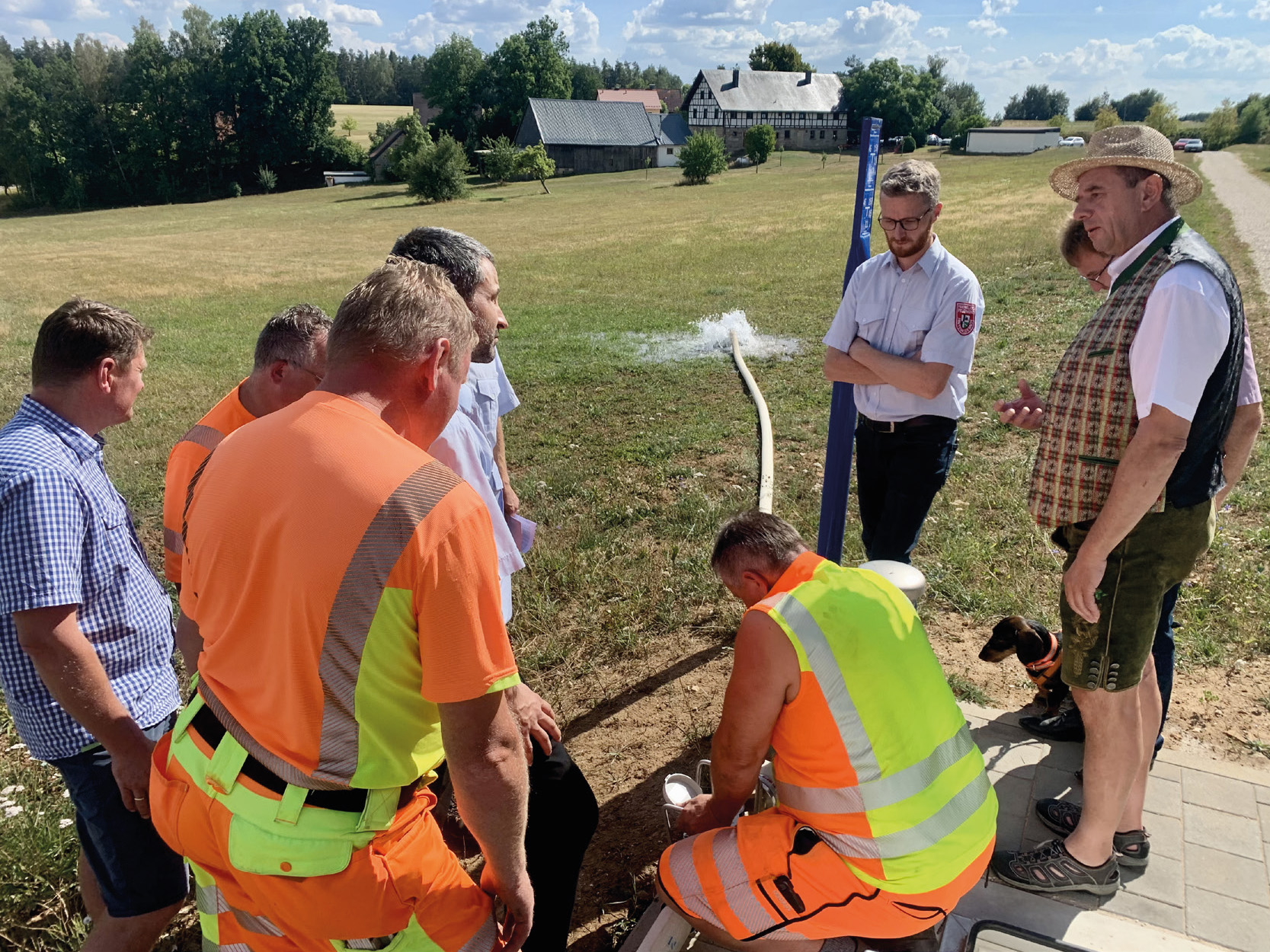 Um jedoch einer aktuell exorbitant hohen Waldbrandgefahr vorzubeugen, in einem Bereich in dem die Löschwasserversorgung als unzureichend für solche Schadenslagen bezeichnet werden muss, haben wir uns mit der Gemeinde Hummeltal entschlossen die Leitung vorübergehend für die Lösswasserversorgung in Betrieb zu nehmen.