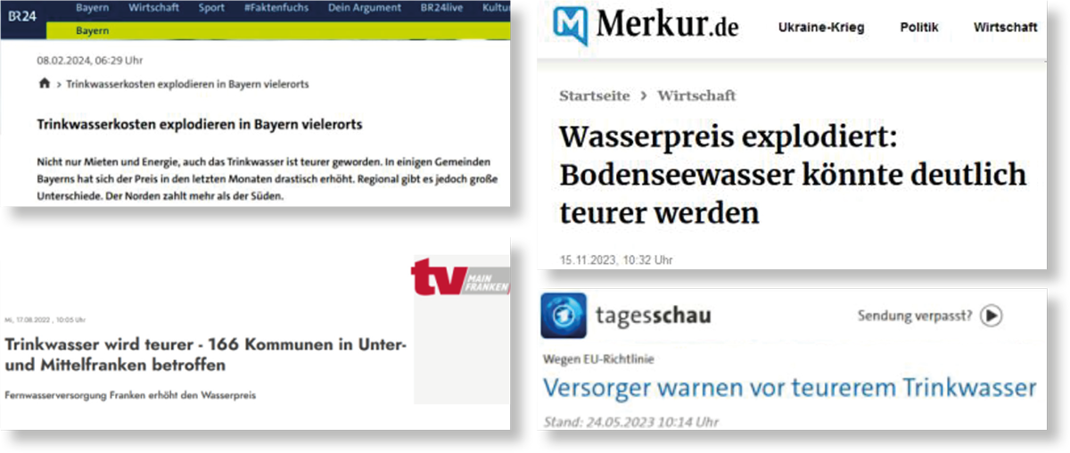 In jüngerer Vergangenheit haben uns durch das Bayerische Fernsehen, durch Tagesschau.de und den Printmedien wiederholt Berichte erreicht, die in Ihren Inhalten von Preisexplosionen beim Trinkwasser informieren.