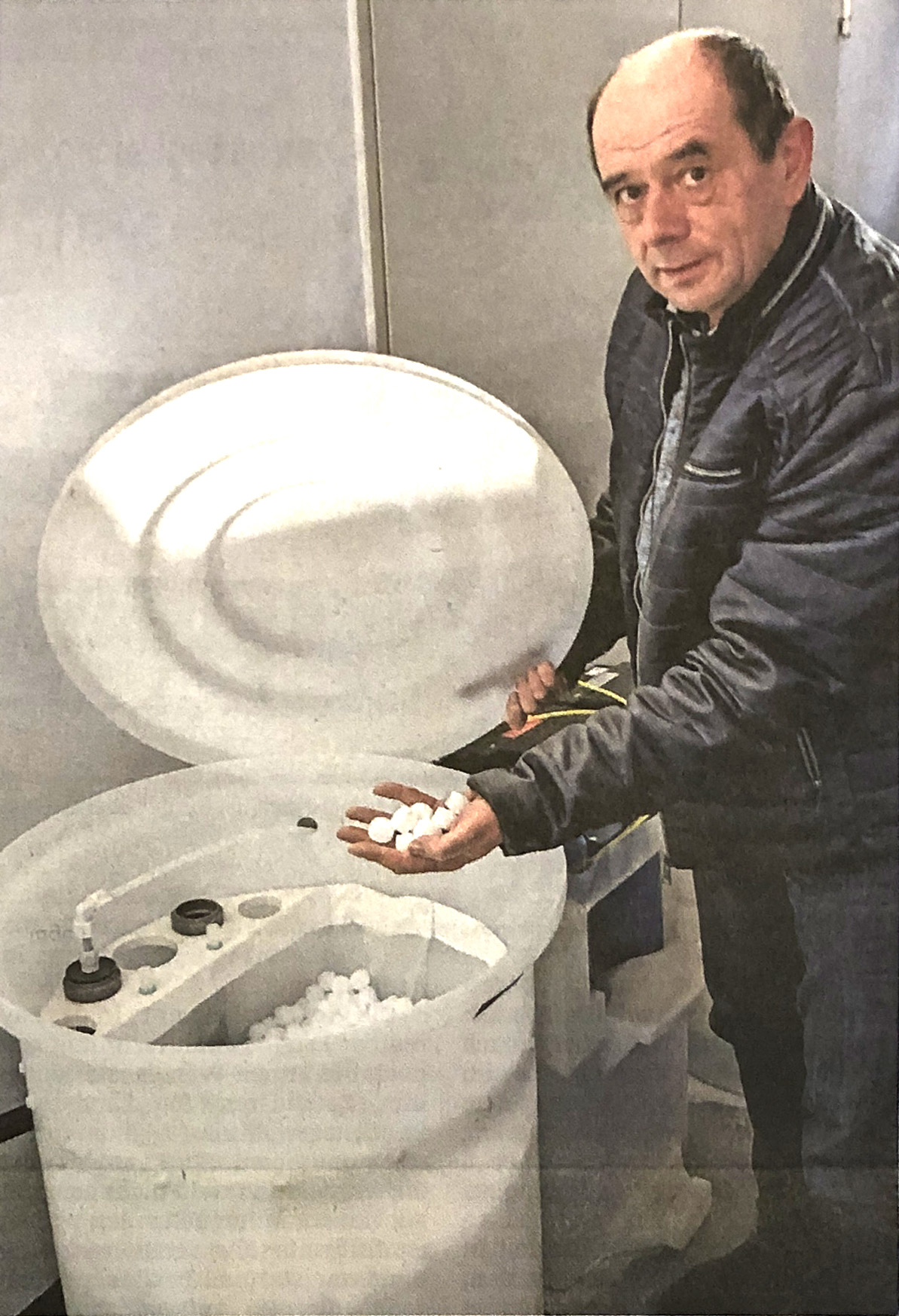 Der Juragruppen-Geschäftsführer Hans Hümmer in der mobilen Wasserreinigungsanlage mit Siedesalz und Elektrolyse, ohne Rückstände wie bei der Chlorbleiche