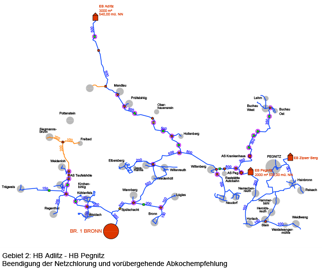 für Hochbehälter Adlitz bis Hochbehälter Pegnitz und ab Hochbehälter Pegnitz