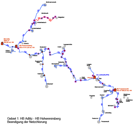 Ab Freitag, den 06.01.2023, wurde nach Rücksprache mit dem Gesundheitsamt Bayreuth die Desinfektion des Versorgungsbereiches, der über den Hochbehälter Hohenmirsberg mit Wasser beliefert wird eingestellt.